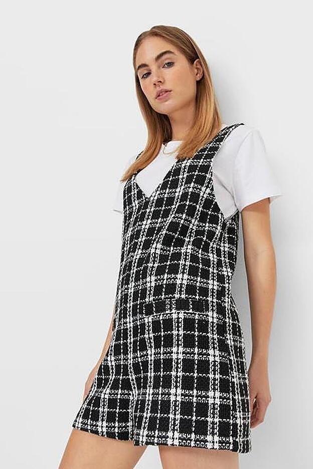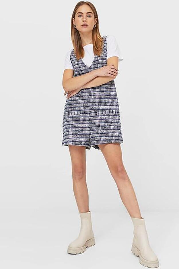 Se trata de un mono de tela fluida tipo tweed que cumple a la perfección con la posibilidad de combinarlo tanto con un jersey de manga larga como con una camiseta básica blanca más propia del verano. Lo mismo ocurre con el calzado. Este mono de cuadros sienta bien tanto con sneakers como con ines, mocasiones y zapatos de tacón para presumir de figura.