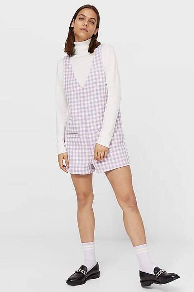 Otro en el lila, el color tendencia de la primavera que está arrasando en Stradivarius, y otros dos monos de cuadros, uno en color pastel rosa empolvado y otro en marino oscuro. Encuéntralo en la firma de Inditex por 19,99 euros. Además, todos están disponibles en todas las tallas de la XS a la XL. Un tallaje perfecto para cualquier figura.