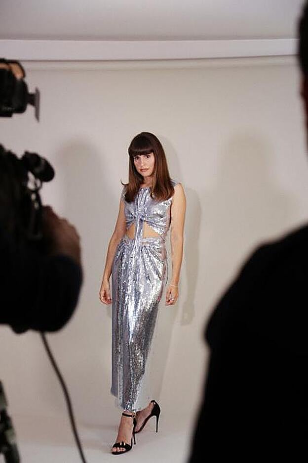 Verónica Echegui, una de las nominadas a mejor actriz de reparto, con un vestido de lamé plateado de Paco Rabanne.