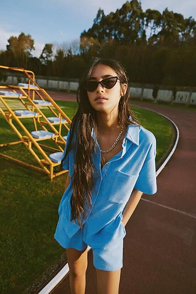 Porque la moda es cuestión de estados de ánimo y seguro que hay días en los que lo único que te apetece es estar cómoda. Este conjunto de Pull&Bear en color azul es la propuesta más indicada, especialmente para los días más calurosos. Porque además es muy original y está confeccionado en tejido toalla.
