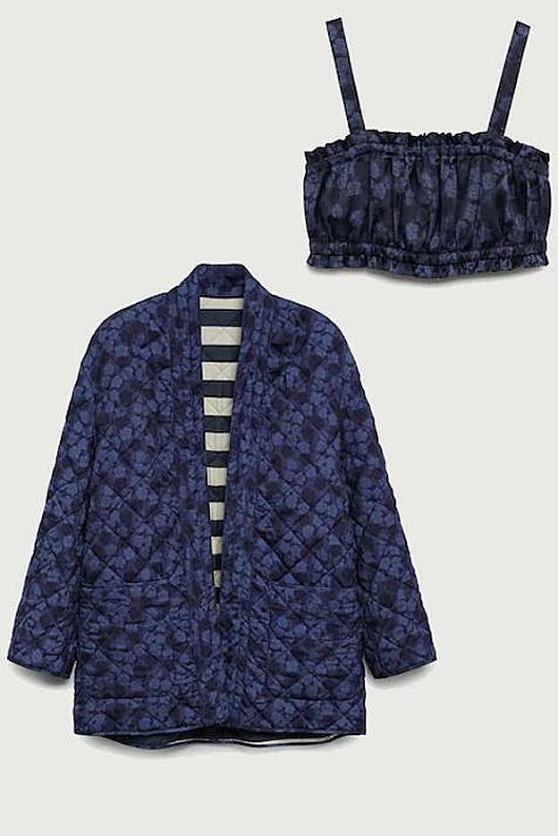 Grace Villarreal combinaba a la perfección esta chaqueta acolchada de corte oversize y estampado floral con un top cropped a conjunto dejando al descubierto su cintura. Tanto la chaqueta como el top puedes encontrarlos en la web de Mango por 59,99 y 19,99 euros respectivamente.