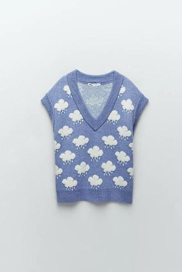 Ha sido Marta Hazas quien nos ha descubierto el chaleco de punto más divertido de Zara. Un modelo en color azul con estampado de dibujos de nubes ideal para la primavera. Cuesta 25,95 euros, tiene los acabados en rib y está disponible en tres tallas: S, M y L. ¡Es monísimo!