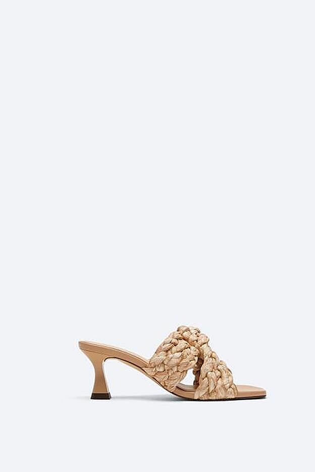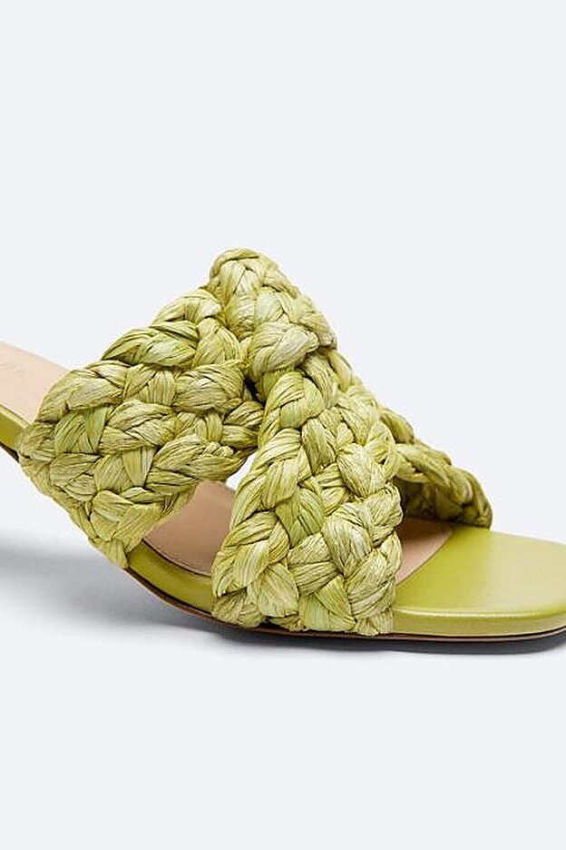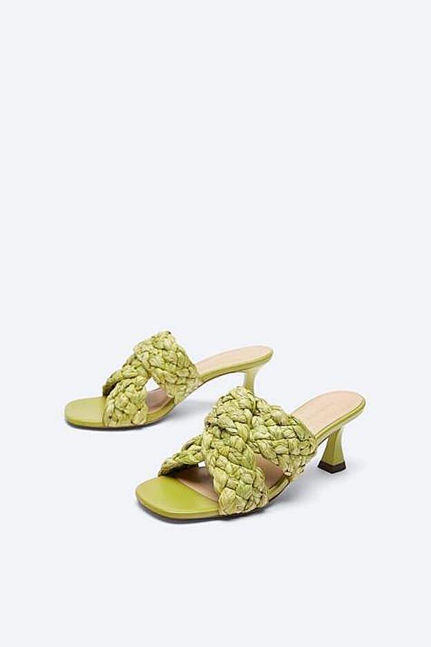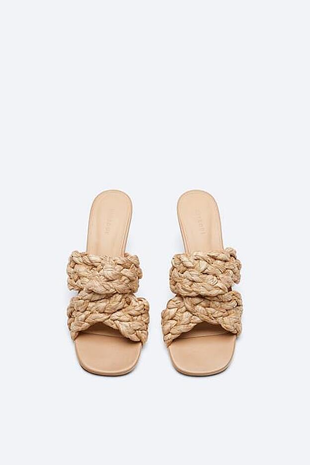 Disponibles en beige y en color lima, las sandalias de Uterqüe vienen con tacón de 7 centímetros y están confeccionadas en rafia. Una propuesta muy veraniega que seguro que se convierte en nuestro comodín para todos los looks que merezcan ser elevados con unas sandalias con personalidad y elegancia.