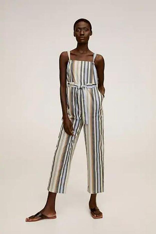Por último, tenemos una propuesta de Mango mucho más causal que puedes llevar a modo de peto. Es de rayas más anchas y en colores algo más llamativos y lo mejor es que está rebajado a 19,99 euros. Su pernera recta hace que sea una prenda muy cómoda y su cinturón a juego hará que puedas ajustar la prenda a la cintura consiguiendo que quede muchísimo mejor. ¿Con cuál te quedas?