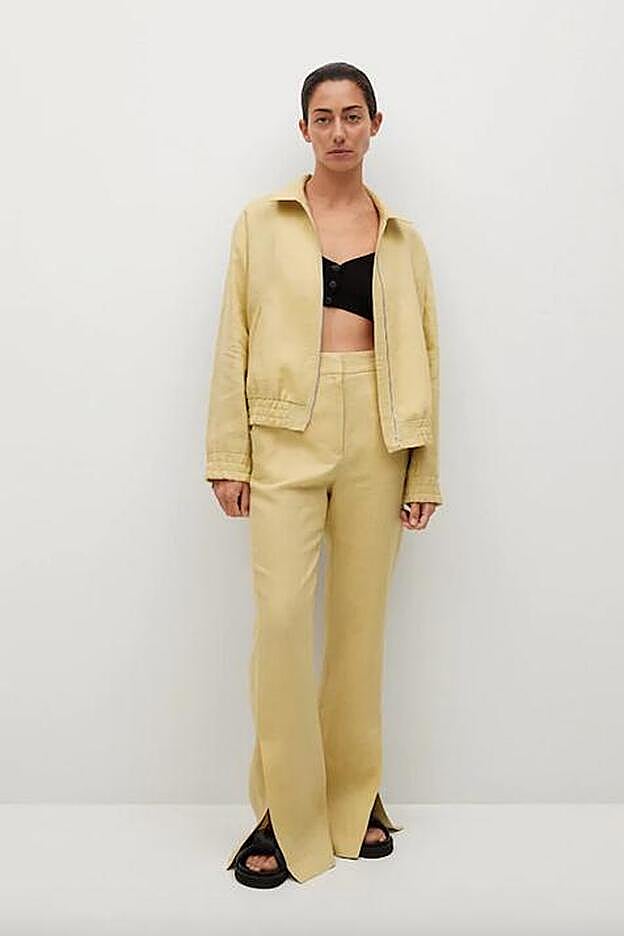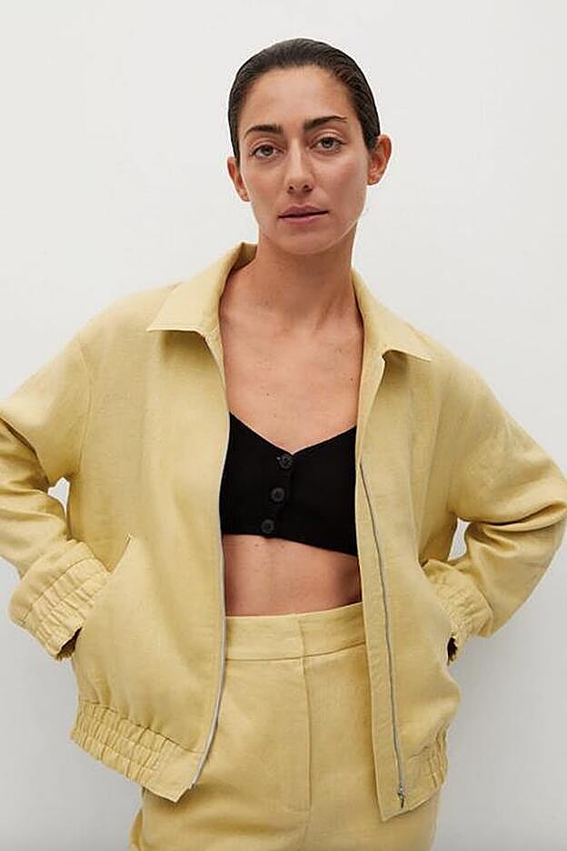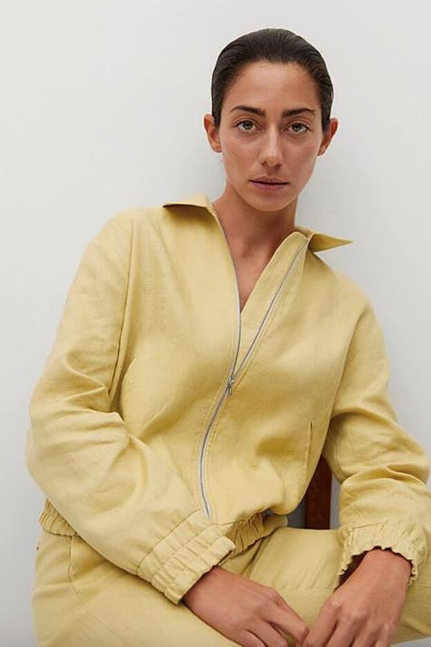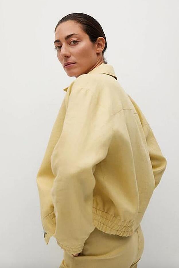 Y es que Mango también ha apostado por el diseño bomber para la cazadora que acaba de incluir en su catálogo, que llega en color mostaza.