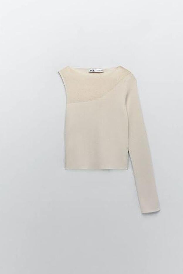 Por último, Zara ha sacado a la venta un modelo de punto más ajustado y con un diseño diferente a los dos anteriores. Es de color crudo y tiene como característica principal el detalle del tejido semitransparente combinado. Cuesta 19,95 euros y es perfecto porque es aún más ponible que el anterior por su estilo más casual y podrás usarlo en un sinfín de ocasiones.