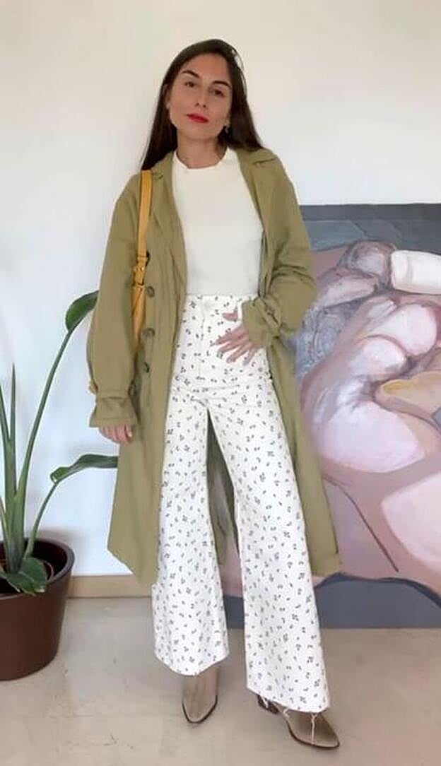 Esta segunda opción es perfecta para estos días en los que hemos dado la bienvenida al buen tiempo, pero todavía no hace demasiado calor. Combina estos pantalones con prendas en tonos neutro como una camiseta de manga corta y botines y añade una gabardina larga, la chaqueta perfecta para el entretiempo.