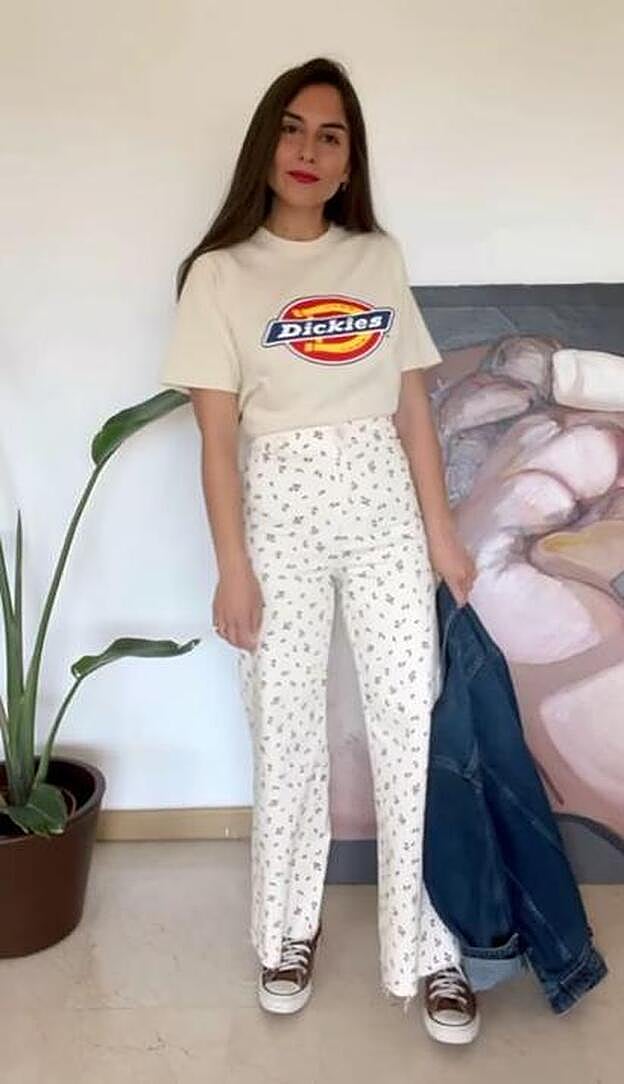 Estos pantalones virales son perfectos también porque puedes sacarles muchísimo partido y llevarlos en un sinfín de ocasiones. Erea ha enseñado una manera de darle un toque sport añadiendo una camiseta de manga corta, zapatillas Converse y una cazadora vaquera. ¡Nos encanta!