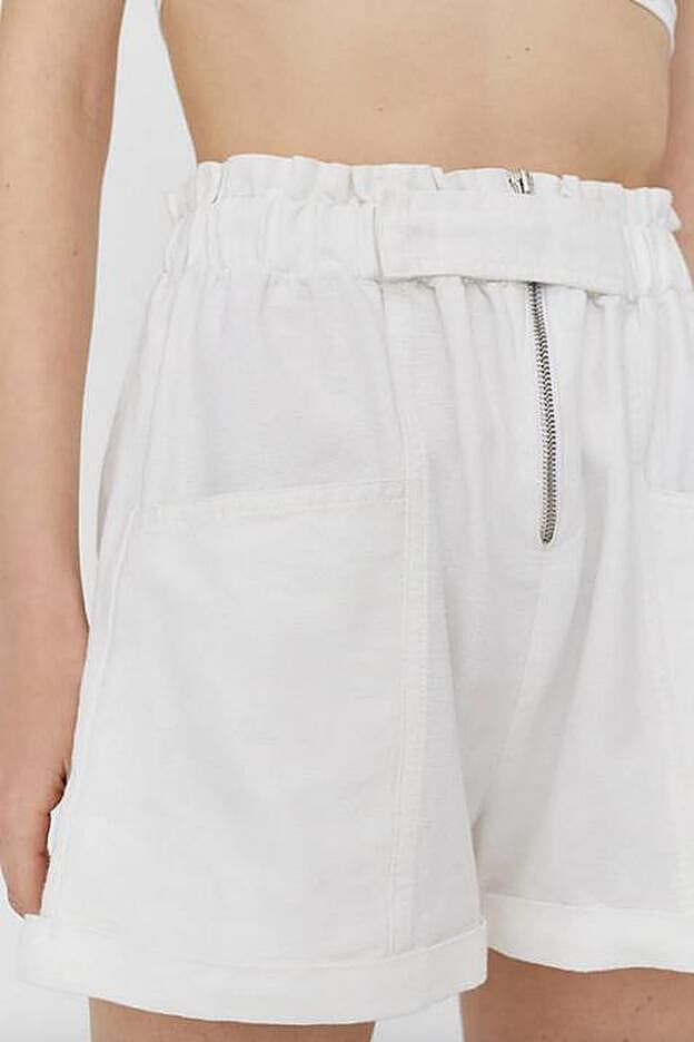 Para aquellas que quieran decantarse por uno de los tonos tendencia del momento, el blanco, Pull&Bear ha lanzado esta bermuda con cintura paperbag y cierre de cremallera vista en el frontal.