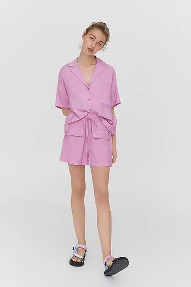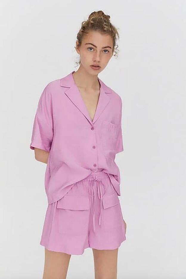 Con bolsillos de plastrón con solapa en el frontal, la firma la ha lanzado con una camisa cropped a juego, por si quieres apostar por el look total. La bermuda tiene un precio de 15,99 euros y está disponible entre las tallas XS y XL.