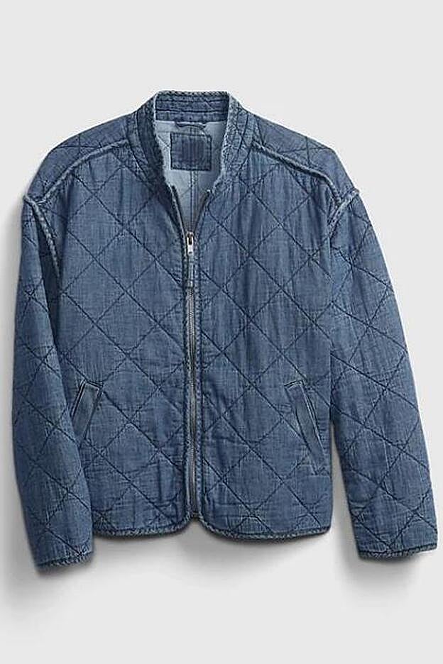 Se trata de una cazadora vaquera de GAP con un denim acolchado no elástico, manga larga, cuello redondo y cierre de cremallera. Un diseño muy original que se sale de la clásica que lleva el cuello solapa, bolsillos y botones y que nos parece una opción perfecta para el día a día porque pega con todo.