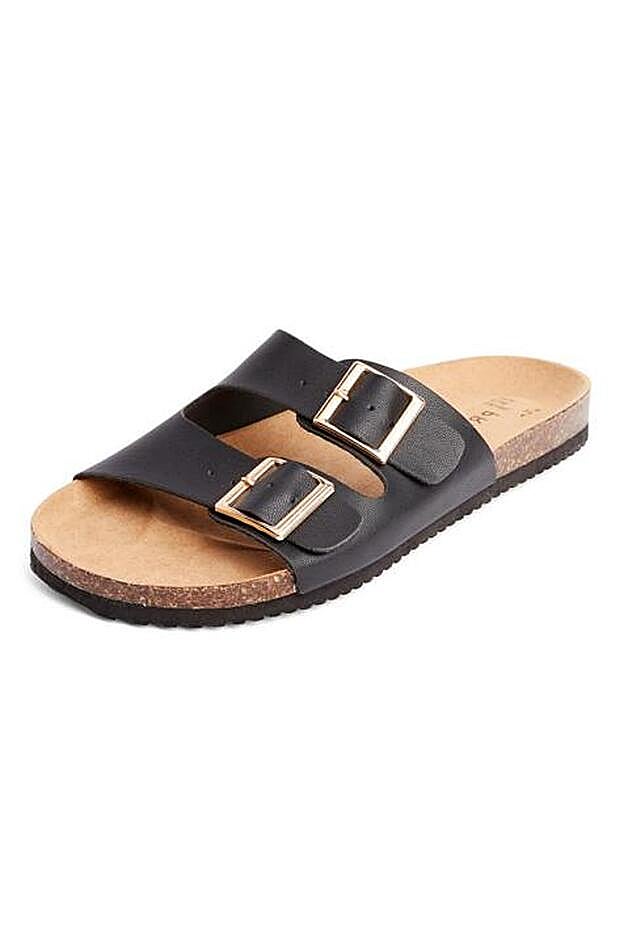 Un clon de las míticas y básicas Birkenstock, firma en la que están inspiradas las de la marca low cost y que triunfa con la llegada del buen tiempo. Con suela plana, doble tira y detalles de hebilla, Primark tiene un su colección este tipo de sandalias en los dos colores que más veremos esta temporada: en negro y en camel.
