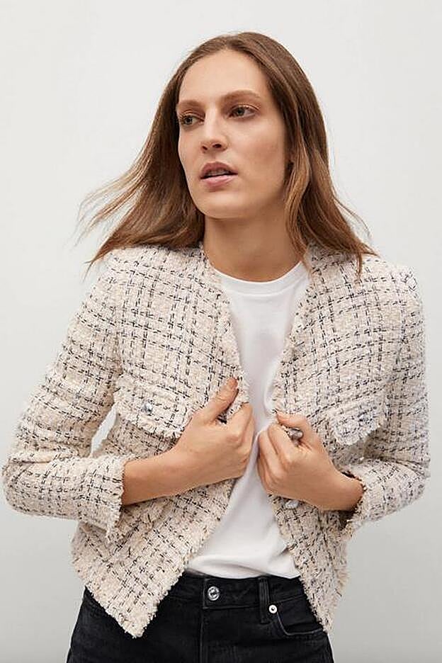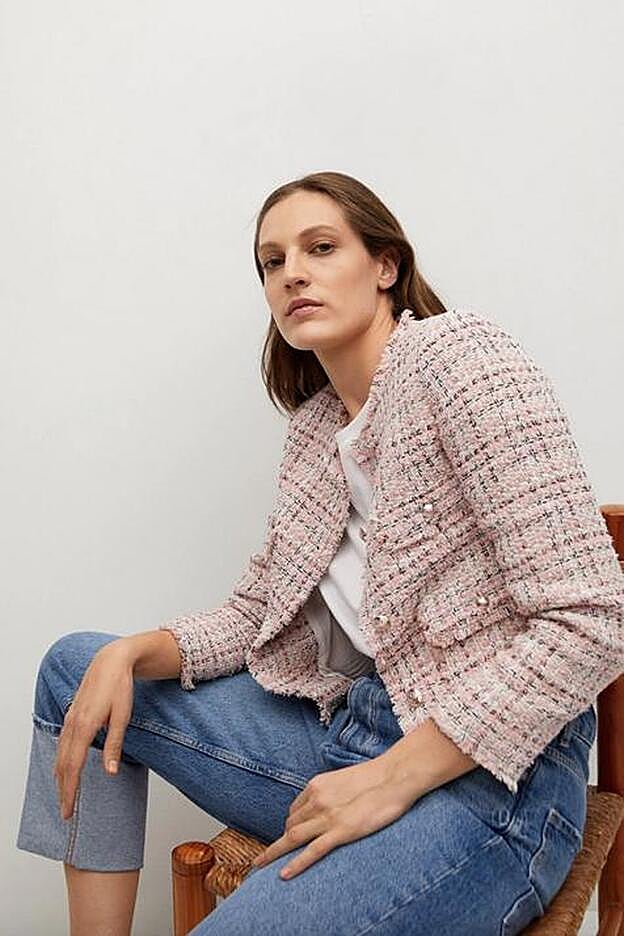 Lo sabemos, lo más socorrido para salir de casa cuando hace buen tiempo pero tememos que refresque es la cazadora vaquera. Y las hemos encontrado en nuestras firmas de moda favoritas en tres diseños muy apetecibles, cropped, con cinturón o tie dye o que son súper favorecedoras, pegan con todo y van a arrasar esta primavera. Pero con la cantidad de posibilidades que podemos encontrar en los catálogos es el momento de salirse de lo habitual, y que mejor prenda para hacerlo que la chaqueta de tweed de Mango que es la versión más elegante y apetecible para darle un descanso a nuestra cazadora vaquera favorita.