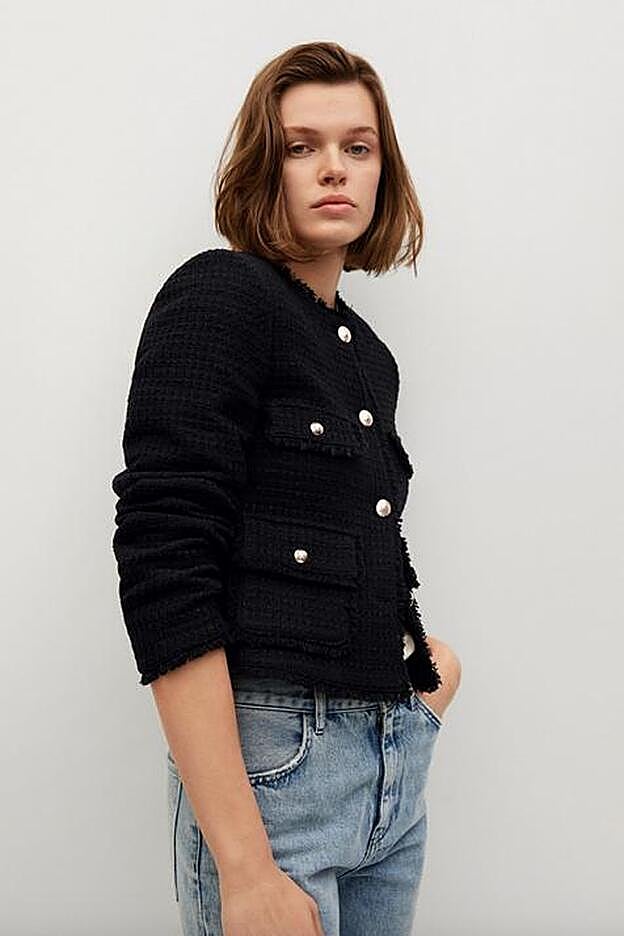 Disponible en tres tonos diferentes, crudo y azul, rosa pastel y negro, la chaqueta de tweed de Mango ha nacido para convertir tus looks con vaqueros en un estilismo lleno de estilo. Pero también serán una compañera perfecta para nuestros pantalones paperbag favoritos o las faldas largas que más nos gusta ponernos.