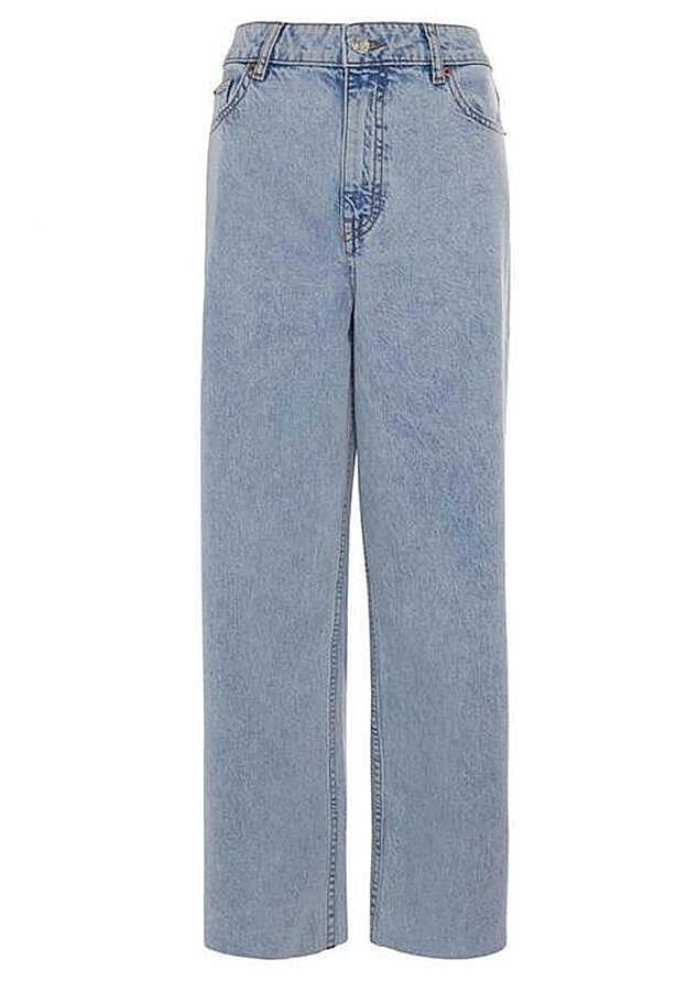 Los vaqueros con pernera ancha han ido llegando poco a poco a las nuevas colecciones y este año se han colocado como el favorito del momento. En Primek han traído este modelo en azul lavado, con bajo deshilachado y talle alto que cuesta 17 euros y son todo un acierto.