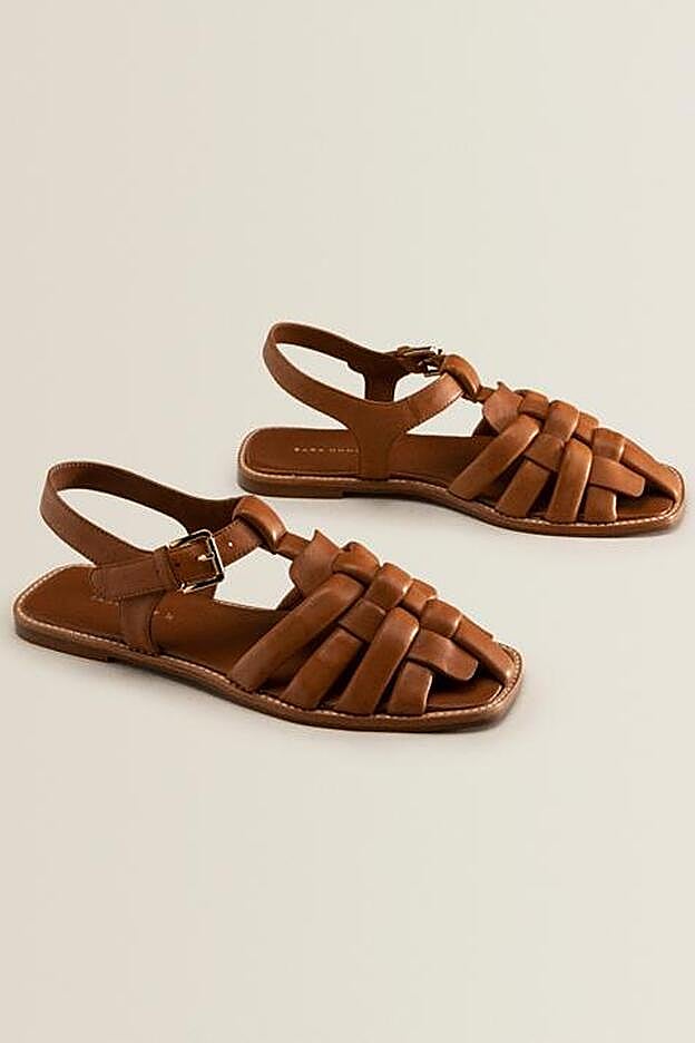 Nuestra primera opción va para esta sandalia plana de piel tipo cangrejera de la nueva colección de Zara disponible en color negro y en color blanco crudo. Tiene tiras entrelazadas, tirador trasero y cierre mediante hebilla lateral. Una opción super favorecedora y estilosa que querrás llevar 24/7 esta primavera/verano. Con vaqueros, con faldas midi, con pantalones de traje... ¡Nada se les resistirá! Hazte con ellas por 69,95 euros y si de verdad te han gustado no te lo pienses. Las de color negro ya están agotadas y con lista de espera en muchas de sus tallas.