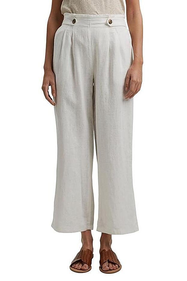 Otra opción más cómoda, fresquita y relajado, es este diseño que nos propone la firma Esprit. Unos pantalones culotte blancos con tejido de lino fluido y ancho y detalles de botones en la cintura. Hazte con ellos en El Corte Inglés por 59,99 euros.