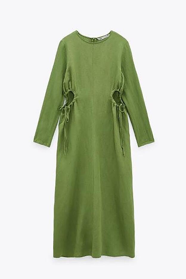 Se trata de un vestido de largo midi con diseño recto de manga larga y cuello redondo. Una prenda confeccionada en tejido de lino, perfecto para la primavera y el verano, que tiene como elemento diferenciado unas aberturas laterales con lazada en forma de círculo. Cuesta 39,95 euros y está disponible desde la talla XS a la XXL. Aunque tenemos que decirte que no por mucho tiempo, porque es un vestido que está arrasando en las redes y promete agotarse en muy poco.