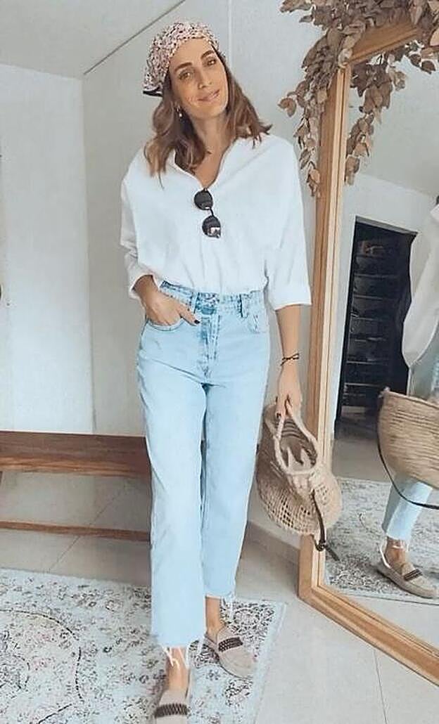 Para ir a un brunch con zapato plano, capazo y pañuelo a la cabeza; con un trench ligero, maxi bolso y zapatillas para ir de 'shopping'; con blazer y mocasines para ir a la oficina; con un chaleco y botines para dar un paseo; con unas sandalias cómodas y un 'shopper' para estar con los 'peques' en el parque; con un suéter cálido para trabajar desde casa ; reinventando la propia camisa blanca (en vez de abrocharla, la cruzamos) y combinándola con sandalias para una cena con tu 'crush'... Las opciones son casi infinitas, y el resultado, siempre perfecto.