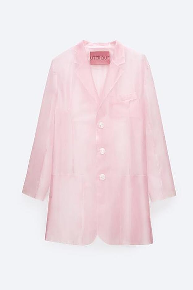Se trata de un chubasquero transparente en color rosa que ella ha comprado en Uterqüe y que tiene un diseño original porque imita al de una blazer. Con solapas, manga larga y botones en color blanco. Cuesta 129 euros y está disponible en talla S, M y L. María lo combinó con unos pantalones rosas y un jersey a juego con cuello bebé a contraste en blanco. Además, añadió unas zapatillas Nike Blazer en color blanco y coral. ¡Ideaza!