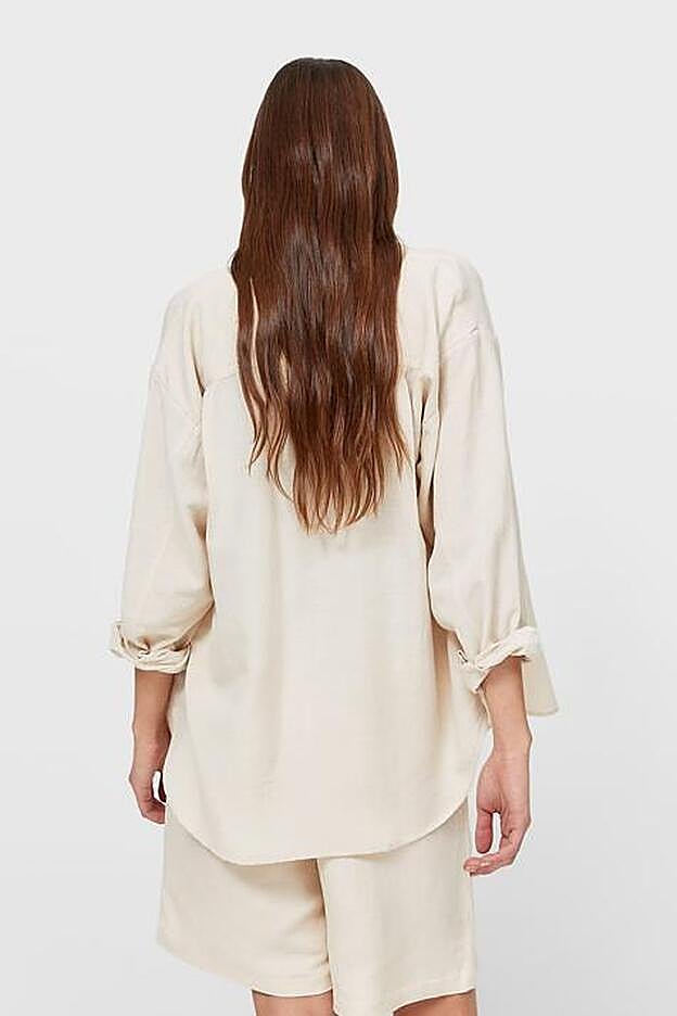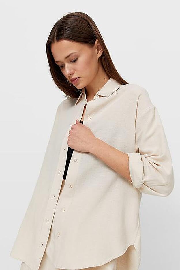 Ideal para combinar con todos tus vaqueros, esta camisa en color piedra y de diseño rústico, está destinada a ser la prenda comodín de tus estilismos las próximas semanas. Porque te la vas a poner sola, con un top por debajo anudada a la cintura o como si fuese una cazadora ligera, para protegerte de las noches más frescas de verano.