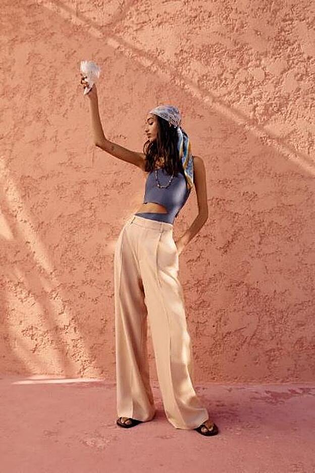 El gigante de Inditex tiene un modelo casi idéntico llamado "pantalón ancho masculino" que tiene un color tostado similar y un corte muy parecido. Cuesta 25,95 euros, está disponible en blanco y en negro y puede encontrarlo desde la talla XS a la XXL. Va a ser tu pantalón favorito de la temporada. Palabra de Paula Ordovás.
