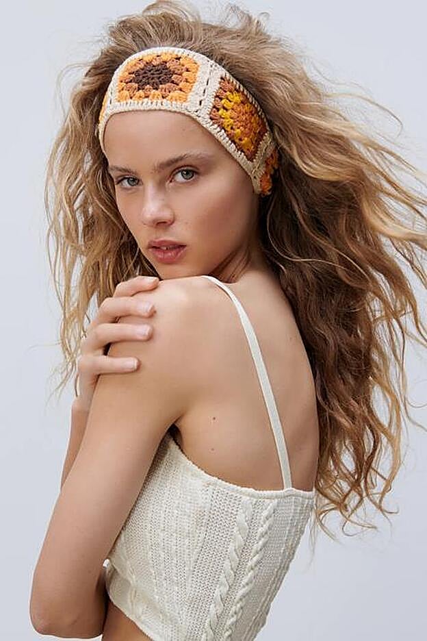 Otra opción super favorecedora es una diadema triángulo tipo pañuelo que se ata en la parte baja de la cabeza y que ya llevábamos en los 90 con mucho estilo. Eso sí, esta versión de ganchillo nos ha conquistado. El pelo suelto es la mejor opción para lucirla, pero también podrás añadir el flequillo o una trenza de lo más favorecedora. También cuesta 9,99 euros y está disponible en dos tonos preciosos: uno tostado y otro verde agua.