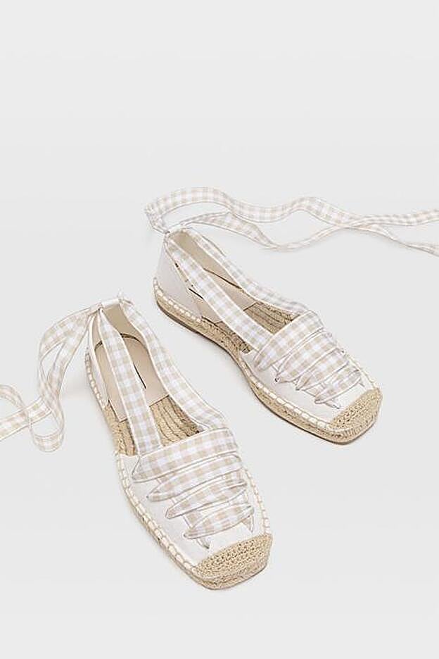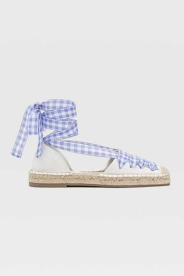 Stradivarius ha lanzado unas alpargatas planas con suela de esparto, punta cuadrada y lazada que va desde el empeine hasta la pierna con el estampado que numerosas sandalias han añadido a su tejido: los cuadros vichy. Por una lado están disponibles en color arena, y por otro, en un azul pastel perfecto para alegrar cualquier look diario. Ambas están disponibles en la web de la firma de Inditex por 25,99 euros y en todas las tallas de la 35 a la 41.