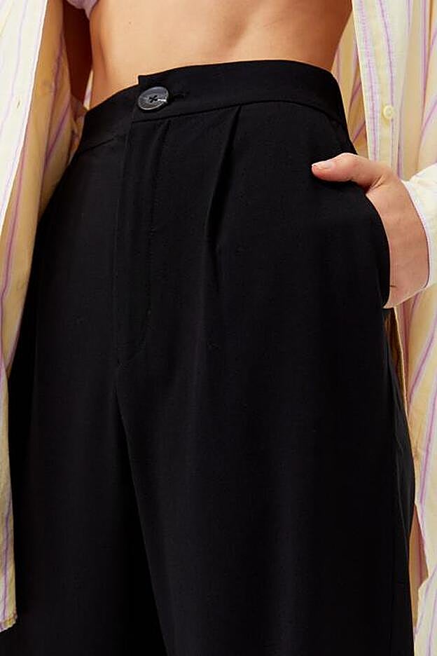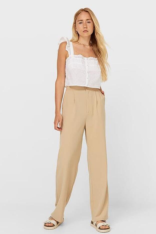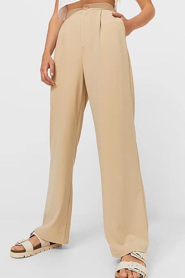 Disponibles en color piedra y en negro, ideales para llevar con cualquier blazer o camisa blanca, los nuevos pantalones de Stradivarius son de tiro alto y vienen con bolsillos laterales y pinzas frontales.