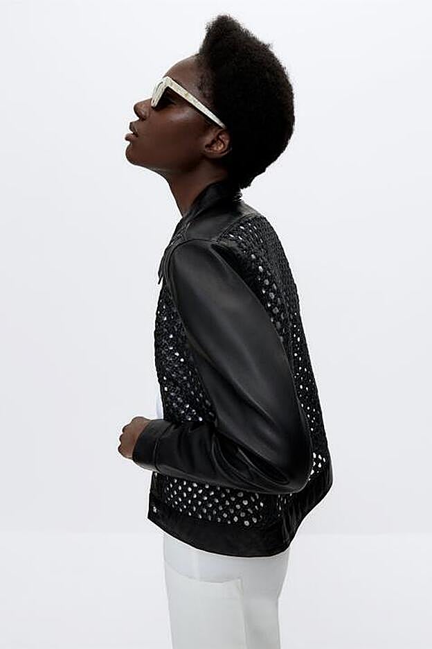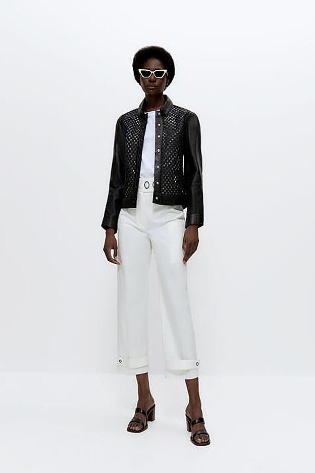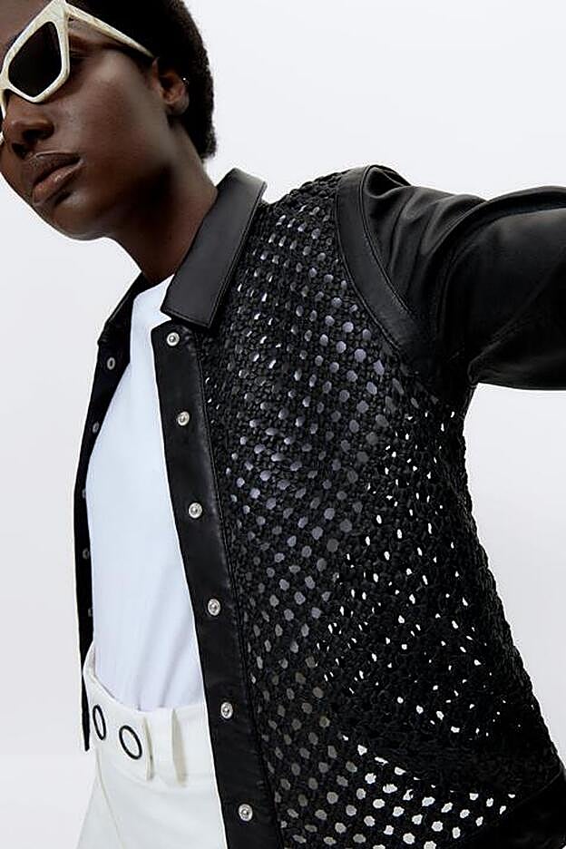 Confeccionada en piel de alta calidad curtida utilizando prácticas sostenibles, esta chaqueta trenzada de Uterqüe en color negro es perfecta para darle un contraste a nuestros looks en el tono estrella de la temporada, el blanco, tal y como podemos ver en las imágenes del catálogo de la firma.