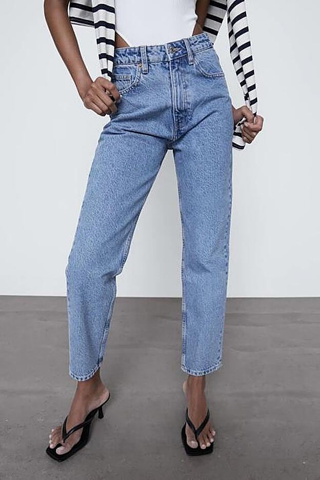 La colaboradora de televisión la ha combinado con unas jean mom clásicos de Zara que estilizan mogollón y que sientan bien a cualquier figura. El modelo exacto no lo sabemos, pero estamos seguras de que con estos vaqueros vas a copiar este look rejuvenecedor sin esfuerzos. Encuéntralos en la firma de Inditex por 25,95 euros y elige color entre negro, blanco, azul clarito, gris o azul medio.
