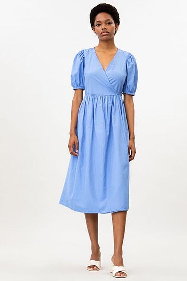 La colección de la firma low cost ha incluido un vestido midi super versátil de esos que te vas a poner con todo tanto en primavera como en verano. Su diseño es cruzado, tiene un escote a pico que sienta de maravilla, es de manga corta, se ajusta con una lazada en la parte trasera para lucir tipazo y está confeccionado en un tejido popelín muy ligero y fresco que nos hace soñar con el buen tiempo.