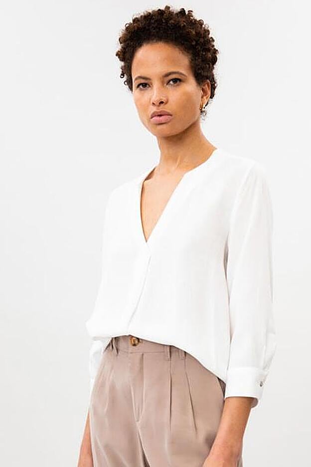 María enseñó un look a sus seguidores que es perfecto para celebrar la llegada del buen tiempo y que es ideal tanto para primavera como para verano. Se trata de un outfit protagonizado por dos prendas de Lefties a las que puedes sacarle muchísimo partido. La primera de ellas es una blusa básica con escote en pico, manga larga y en color blanco que cuesta 14,99 euros.