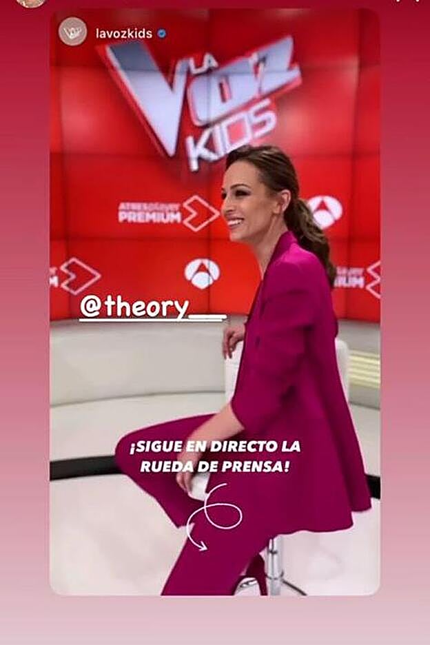 Eva González ha vuelto a las grabaciones de 'La Voz' esta vez para comenzar con la edición Kids. Una vuelta al trabajo que le ha puesto muy contenta y que ha estrenado con una rueda de prensa ante los medios de comunicación y para la que escogió un traje en color rosa fucsia. Un dos piezas de chaqueta y pantalón muy parecido al que ha llevado Rocío Carrasco y con el que ha confirmado que es ya una de las tendencias del momento.