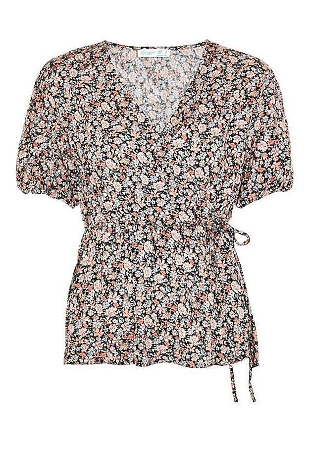 Su competidora directa no nos lo ha puesto nada fácil. Se trata de una blusa de flores de manga corta con escote a pico y lazada cruzada en el lateral de la cintura que se adapta a todo tipo de figuras. Una apuesta segura a la hora de combinar todo tipo de vaqueros, ya sean ajustado o anchos, y todo tipo de prendas básicas que necesitan una nueva vida fuera del armario.