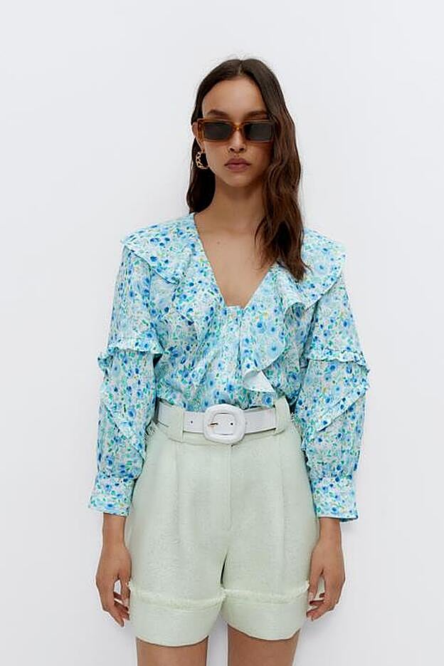 Los volantes también están presentes con diseño cruzado en las mangas abullonadas y el cuerpo de la prenda es de diseño entallado. Está previsto que llegue a la web de la firma en las tallas S, M y L, con tiene un precio de 79 euros.