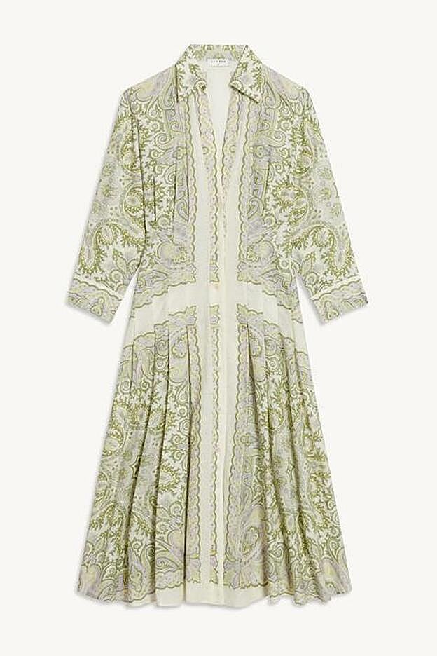 Una chaqueta de entretiempo que combinó con un vestido camisero estampado en tonos verdes claro de Sandro. Otra prenda de lo más original que cuesta 395 euros y que, a pesar de tener un estilo más elegante, Dafne demostró que puedes usarla en un look más casual para el día a día.
