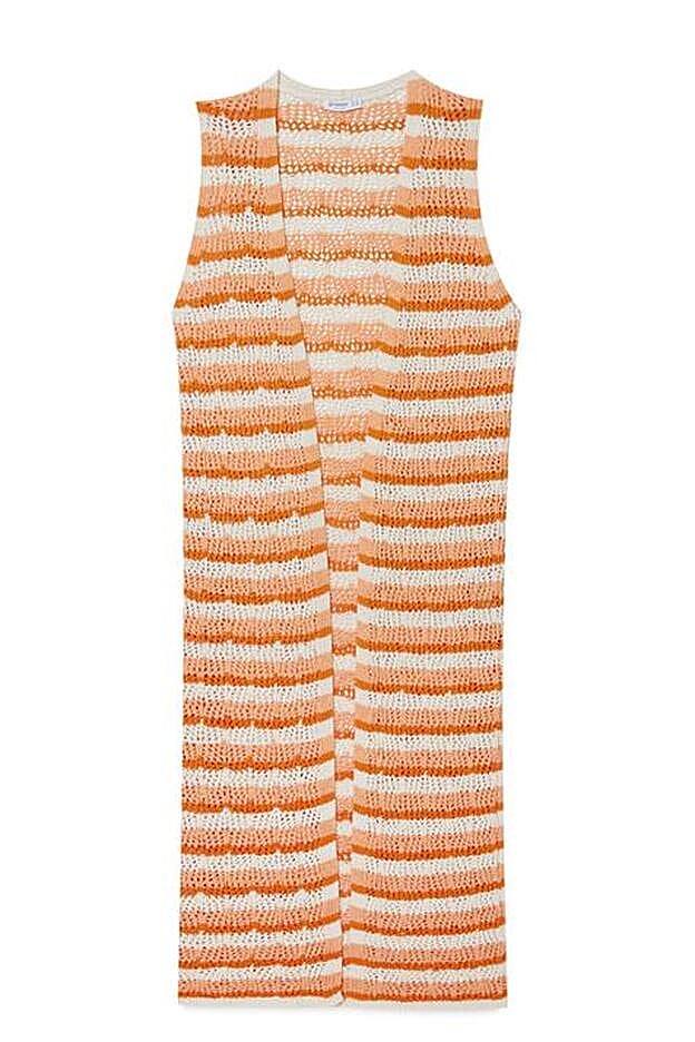 Es un chaleco largo fabricado en el mismo tejido que las dos prendas anteriores y que puedes comprar por 25,99 euros. Una prenda ideal que añadir a tus looks más básicos y añadir un toque más moderno con el que arrasar en primavera y verano.