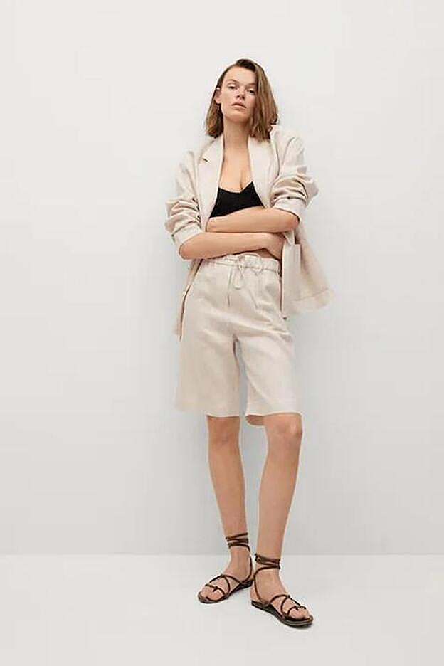 Para la parte de abajo, Grece ha decidido combinar unas bermudas de lino super fresquitas y versátiles en el mismo tono. Su diseño es fluido y son de tiro medio. Son ideales tanto para llevarlas en looks casual con zapatillas o para ir a la oficina con mocasines o sandalias de tacón. Hazte con ellas en Mango por 25,99 euros.