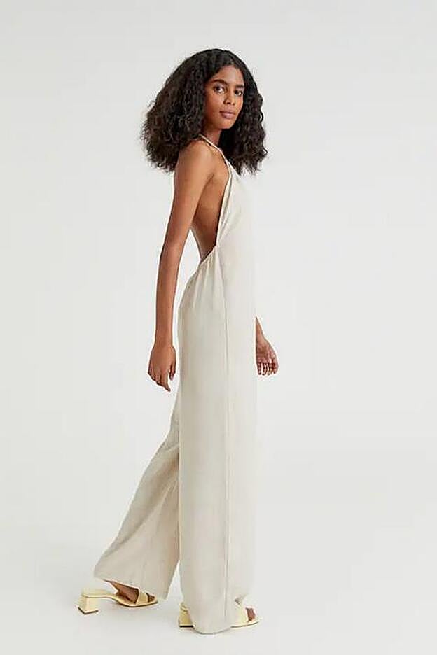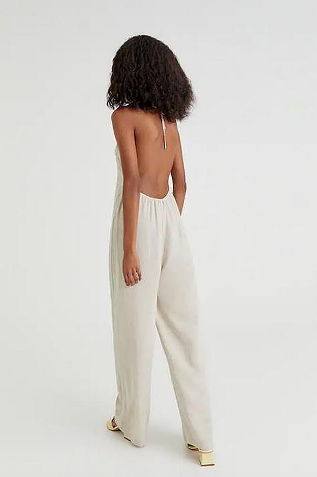 En color natural, está confeccionado en viscosa y lino y viene con cuello halter y espalda descubierta. Dos detalles que nos ayudan a estilizar nuestra figura y lo convierten en una prenda imprescindible para nuestros looks más importantes.