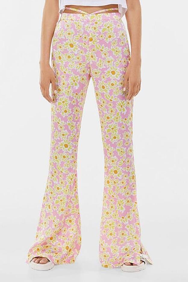 ¡Vivan las flores en primavera! Sí, ya sabemos que es el estampado fácil al que recurrir esta temporada, pero es que estos pantalones de la nueva colección nos han robado el corazón. Y no somos las únicas, porque es una de las prendas más vendidas de la firma y ya está agotadísima. Hablamos de unos pantalones con un print de flores de margaritas en blanco y amarillo sobre un fondo rosa. Son de un tejido elástico, por lo que son muy cómodos y ponibles, y llevan un talle alto acompañado de una originales tiras en la cintura perfectas para lucir con tops cropped.