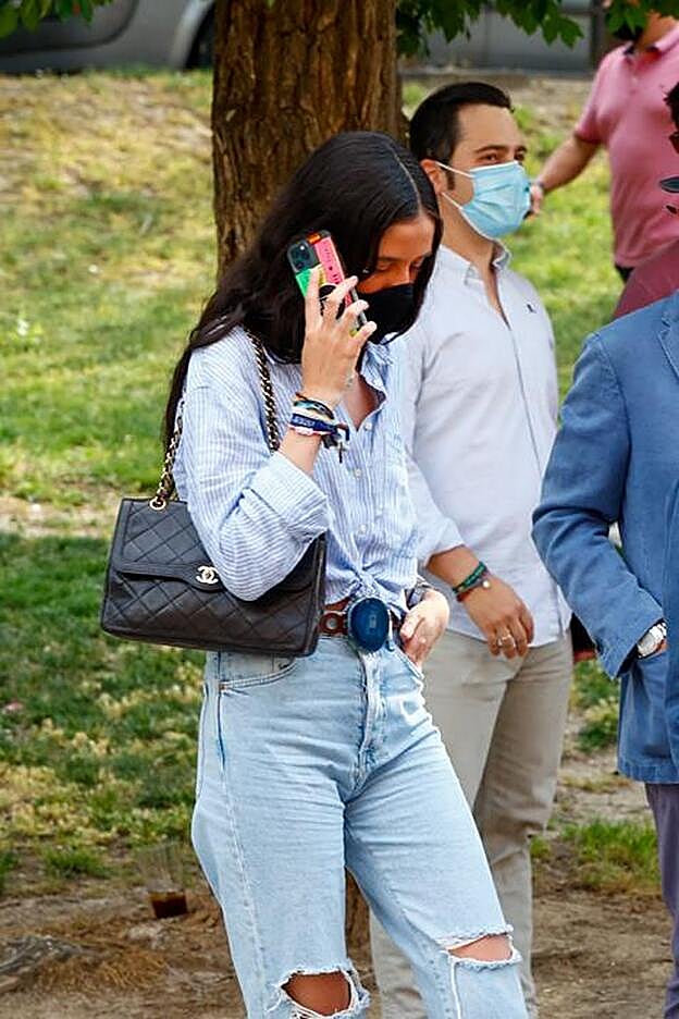 Y no, no (solo) hablamos del bolso de Chanel vintage que le regaló su padre (pertenecía a su abuela, Concepción Saenz de Tejada), que sabemos que por sí mismo es capaz de elevar cualquier look, sino del detalle de llevar la camisa anudada dejando la tripa ligeramente al aire y completar el conjunto con un cinturón con llamativa hebilla. Estos dos sencillos gestos consiguen que la silueta se vea mucho más estilizada, ya que marcan la cintura y aportan un toque muy sofisticado y femenino.