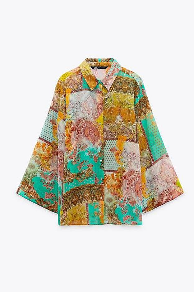 Seguimos con un clásico vintage que se sigue reinventando y actualizando en cada temporada: el estampado patchwork. Y el multicolor de esta camisa XXL es tan bonito y elegante que lo queremos llevar con todo tipo de vaqueros y pantalones. Para ir a la oficina, para salir a las terrazas, para ir a la playa... Una joya para combinar este verano de lunes a domingo. La talla XL está agotada, el resto aún están disponibles por 25,95 euros.