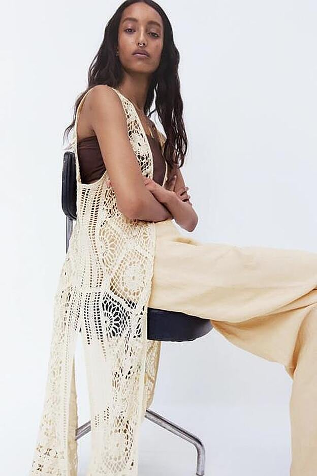 Hazte con él en la página web de Zara antes de que se agote. Cuesta 39,95 euros y está disponible en las tallas S, M y L para adaptarse a todas las figuras. Todo el mundo te preguntará por este chaleco crochet tan bonito.