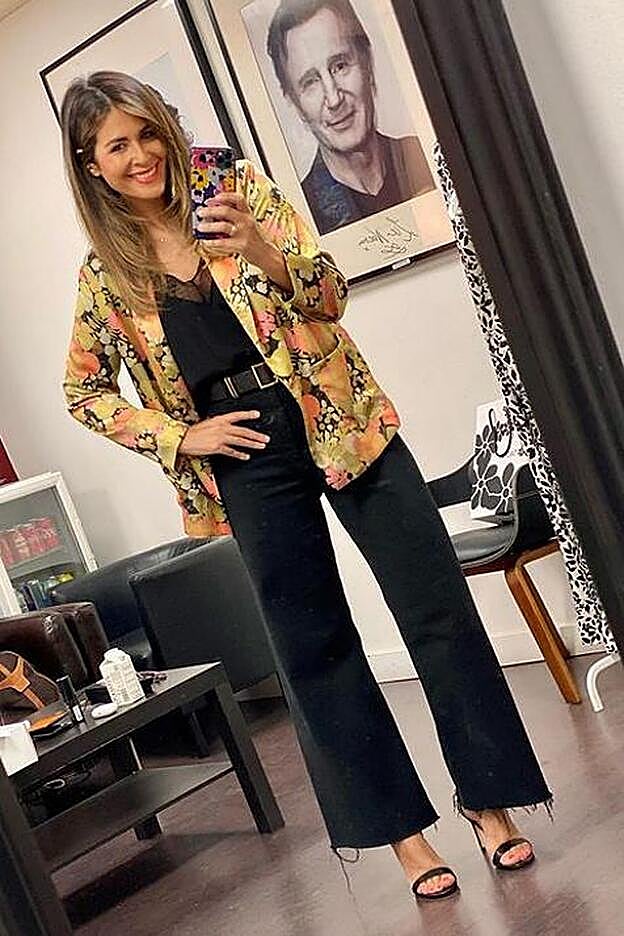 Pero volviendo a la combinación, tenemos que admitir que nos conquista. Primero por el acierto de combinar dos prendas negras básicas sin caer en un outfit aburrido. Todo gracias a la blazer repleta de color que ofrece el estampado de flores. Segundo por la versatilidad de llevarlo tanto como zapatillas cómodas como con sandalias de tacón para subir el nivel de elegancia como ha hecho Nuria Roca. Tercero porque da mucho juego a la hora de combatir el cambio de temperaturas de la noche al día. Y cuarto porque rejuvenece a los 40, pero también se puede llevar a los 20 y a los 30.