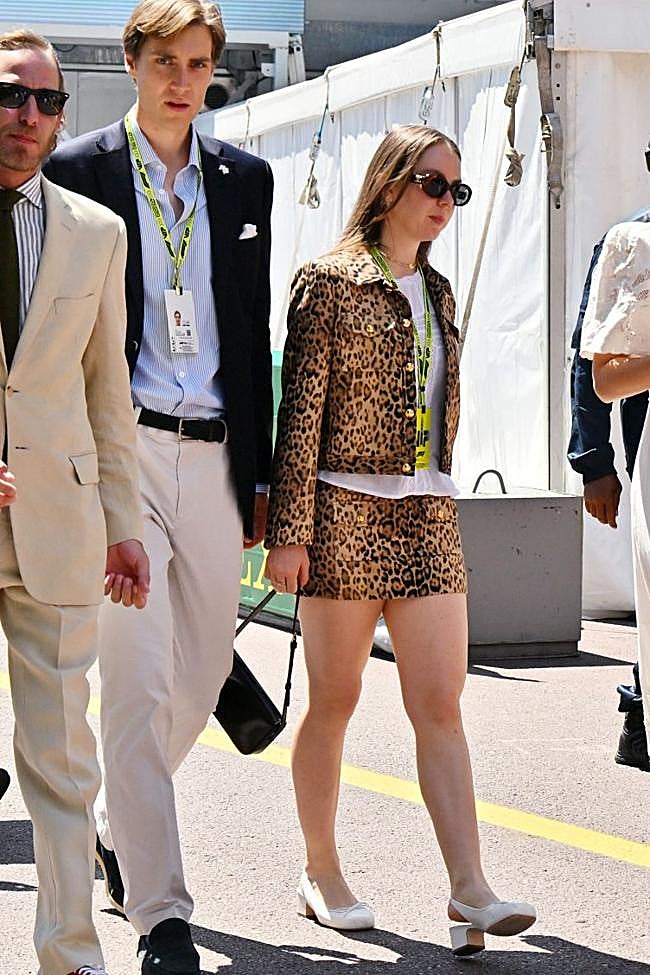 El Gran Premio de Fórmula 1 de Mónaco es una cita habitual en el calendario de Alexandra. No se pierde la competición automovilística que se celebra cada año en el principado y es allí donde opta por looks diferentes. Es el caso de este con un vestido de estampado de corazones, salones y diadema.