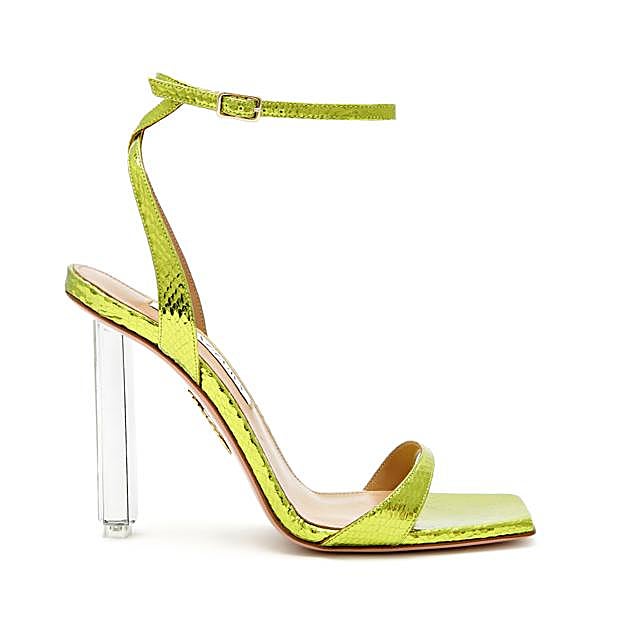 Se trata de un vestido de manga larga, con cuello en forma de pico y con solapas y un diseño cut-out con aberturas en la cintura y la espalda y que combinó con un top negro debajo y unas sandalias metalizadas de tacón fino a juego, en concreto, el modelo Mirror Sandal en color Lime de la marca Aquazzura. ¡Estaba ideal!
