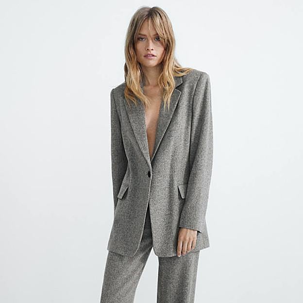 La última opción que presentamos (te recomendamos que eches un ojo a la colección de Massimo Dutti al completo porque la variedad es muy amplia), es esta blazer de espiga en tejido de lana con hombros marcados con hombreras, corte fluido y largo, cierre de un botón y bolsillos con solapa, en color gris, a un precio de 99,95 euros (ahora rebajado a 79,95 euros). Versátil, práctica y calentita, es el básico por excelencia.