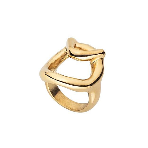 Si lo que quieres es invertir en calidad y piezas más duraderas, atenta a esta de Uno de 50. Confeccionado en metal bañado en oro, este anillo tiene forma de eslabones circulares y triangulares, que darán un toque original y alegre a todos tus looks. Cuesta 109 euros y es una forma perfecta de copiar el anillo de la Reina Letizia.