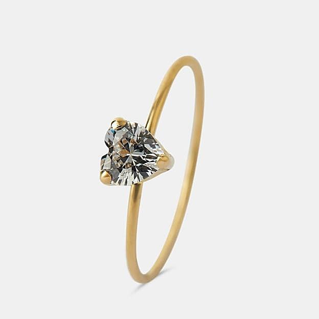 Anillo bañado en oro amarillo de 18kt adornado con una circonita blanca en forma de corazón, de El Corte Inglés.